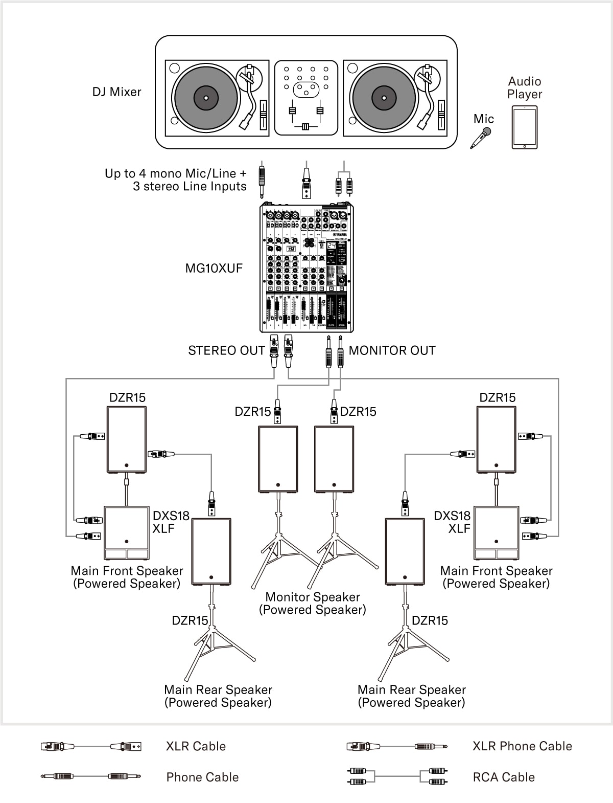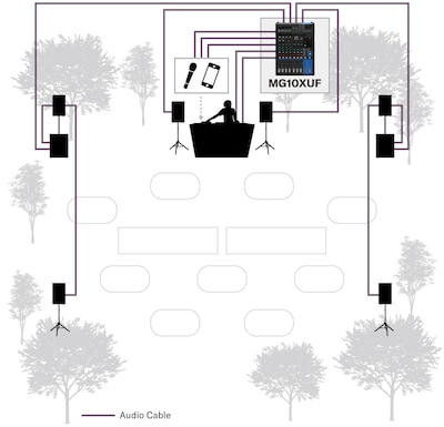 Tato sestava může klamat svým tělem, neboť jde o přenosný, uživatelsky přívětivý PA systém s dostatečným výstupním výkonem pro poskytnutí jasného a energizujícího zvuku při přehrávání hudby na středně velkých venkovních party/DJ akcích apod. pro publikum do 100 osob v závislosti na místě konání.