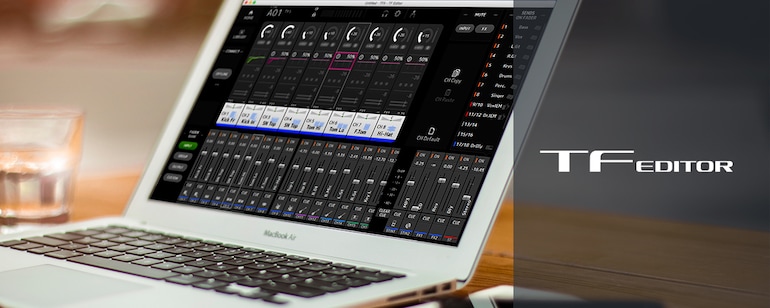 Aplikace TF Editor pro počítače se systémem Windows a MacOS X nabízí kompletní rozhraní pro offline editaci a nastavení TF mixů se správou scén a presetů a s pohodlným zadáváním názvů kanálů. Kromě toho, že lze nastavit mix offline kdykoliv a kdekoliv, tak TF Editor lze použít také pro online ovládání, stejně jako aplikace TF StageMix a MonitorMix. Na počítačích s dotykovou obrazovkou s operačním systémem Windows lze použít stejná gesta jako na samotném mixážním pultu. A při použití Wi-Fi může počítač fungovat jako praktický dálkový ovladač mixu. Současně lze připojit až tři zařízení s běžící aplikací TF Editor nebo StageMix.