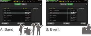 Paměť na scény nabízí banky A a B, každou s kapacitou pro až 100 scén. To je celkem 200 scén, které si můžete připravit a okamžitě vyvolat, když je potřebujete. Řada scén je předprogramovaných, aby poskytly uživatelům dobrý výchozí bod: scény s úžasnými 1-knob COMP a 1-knob EQ nastaveními pro nejjednodušší možné ovládání a scény s vypnutými funkcemi 1-knob pro zkušené zvukové techniky, kteří budou chtít pracovat podle zavedených postupů. Banky jsou skvělé pro organizaci různých typů scén: jedny scény mohou být organizována například podle typu hudby a druhé podle typu akce.