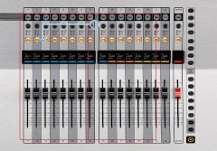 • 17 motorizovaných faderů (16 kanálových + 1 hlavní master)
