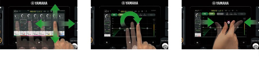 Při vývoji TF série vycházeli inženýři z Yamahy ze stávajícího základu uznávaných rozhraní špičkových mixů a přidali intuitivní ovládání pomocí rozhraní optimalizovaného pro dotykový panel, který se stal známým a využívaným v mnoha aplikacích. Díky tomu, že spoustu nastavení a funkcí lze provádět prostřednictvím dotykového displeje, tak se inovativní rozhraní TF série rychle stane naprosto přirozené pro široké spektrum uživatelů. Ať už máte zkušenosti s digitálními mixy Yamaha, pracujete s dalšími digitálními konzolemi, ovládáte analogové mixážní konzole, nebo jste nikdy předtím nepracovali s mixem, tak TF konzole vás dovede rychle a bez námahy s efektivním pracovním postupem k požadovaným výsledkům. Dostupnost fyzických ovládacích prvků obklopujících dotykový panel dále zvyšuje univerzálnost a přesnost ovládání.
