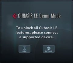 Po spuštění aplikace Cubasis LE se tato spustí v demo režimu. Pro odemčení sady funkcí verze Cubasis LE musíte připojit AG06 nebo AG03 k vašemu iPadu.