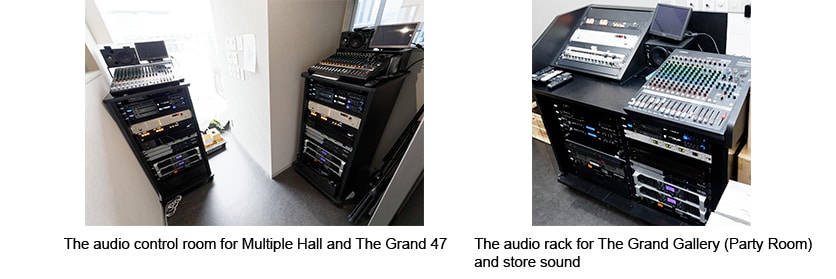 For sound, The Grand Ginza has adopted a range of Yamaha equipment: MGP16X mixer; Q2031B graphic equalizer; PX3, MA2120, and XMV8140 power amplifiers; NEXO DTD-I output processing; and VXC4, VXC6, and NEXO PS8 speaker systems. We spoke to Mr. Toshiki Fukuyama director of The Grand Ginza, and Mr. Jyunji Ozono, system engineer with E’Spec, the company commissioned to provide sound for the facility, to learn more about the decision to use Yamaha gear and how it all comes together in daily operation.