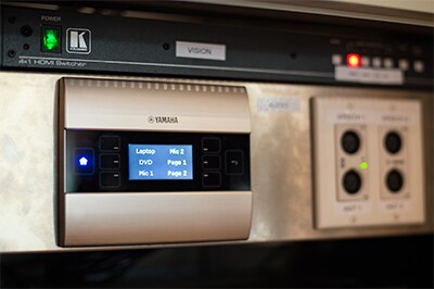 The AV facilities in the breakout rooms are designed to be ‘self serve’ by any user. Recently the existing analogue audio systems were replaced by a brand new digital system, based on the site’s existing Yamaha MRX7-D matrix processor and DCP series control panel.
