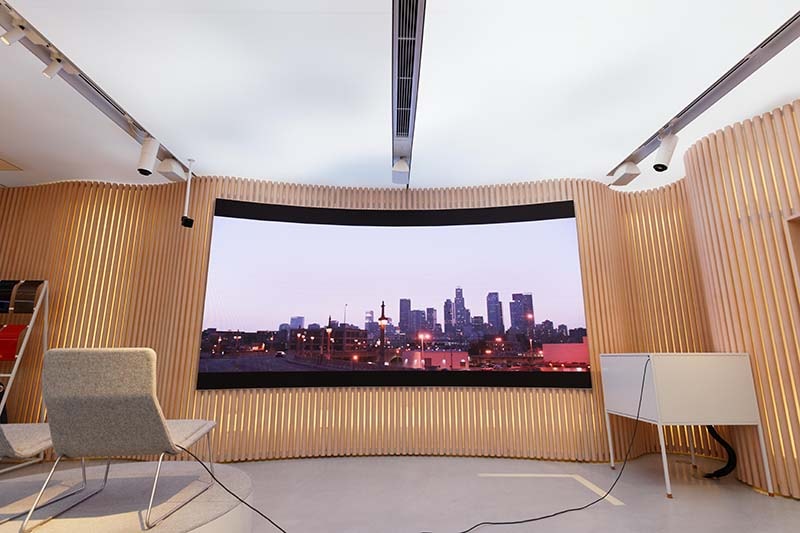 The video content, mostly Swedish scenery, is sent from the Volvo head office. Different video content will sometimes be used during live performances and art events.
