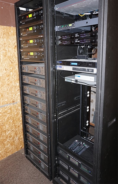 As part of the project, the sound booth was relocated further back in the house, and, again, wiring was a big challenge, since existing conduit paths were limited. “Even some of the existing underground paths had to be abandoned because of broken paths or corroded pipes,” Sullivan said. “In laying out the system wiring, we decided early on we would leverage the Dante network that was going to be installed to accommodate the Yamaha systems. By minimizing cable requirements to simple Cat for Dante audio, we were able to accommodate the expanded audio needs via the digital domain.”