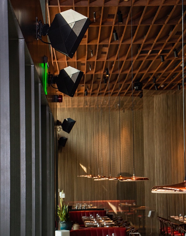 The subtle lighting, open kitchen and bar space are enhanced by high quality acoustics and background music, both designed by Mr. Kapil Thirwani of Munro Acoustics. Understanding the restaurant’s discerning visitor demographic, he designed an audio environment that would truly enhance their dining experience. He chose Yamaha and NEXO products because he knew that they would deliver exceptional sound, while remaining very cost-effective.