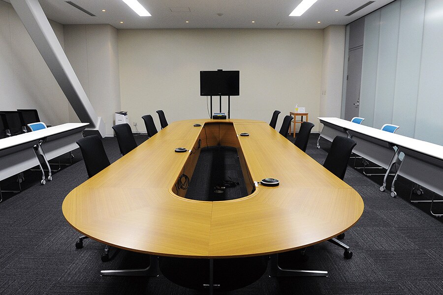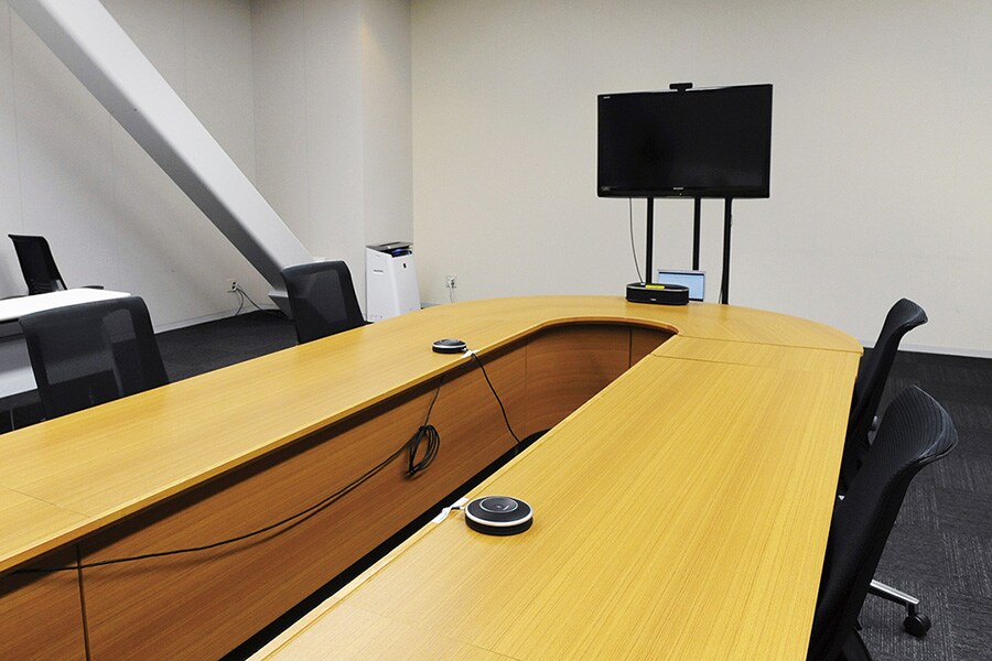 - Three types of speakerphones have been installed in meeting rooms, tailored to their sizes, to meet the growing need for online conferencing
