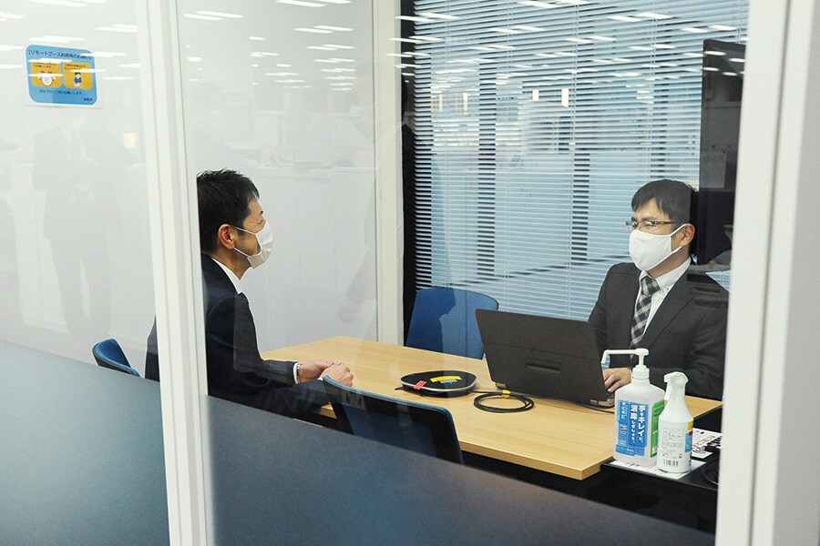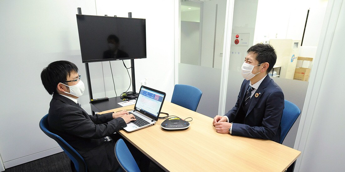 At the company-wide meeting held every Monday morning, head office executives take part from large meeting rooms where YVC-1000MS are installed, or from mid-size meeting rooms where CS-700 are installed, or from their own PCs. While ensuring social distance, we have achieved smooth communications with the managers of 18 branches, with 428 branches nationwide also joining on tablets (viewing/listening only). The newly constructed meeting booths at the Tokyo head office and the YVC-330 installed in the meeting rooms of 18 branches are used for daily communication across departments and group companies following the shift toward working from home.
