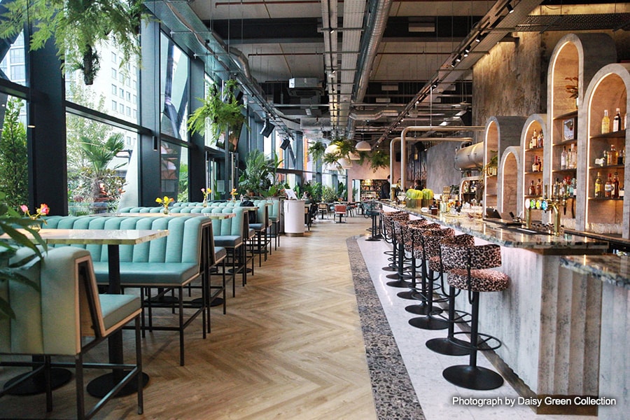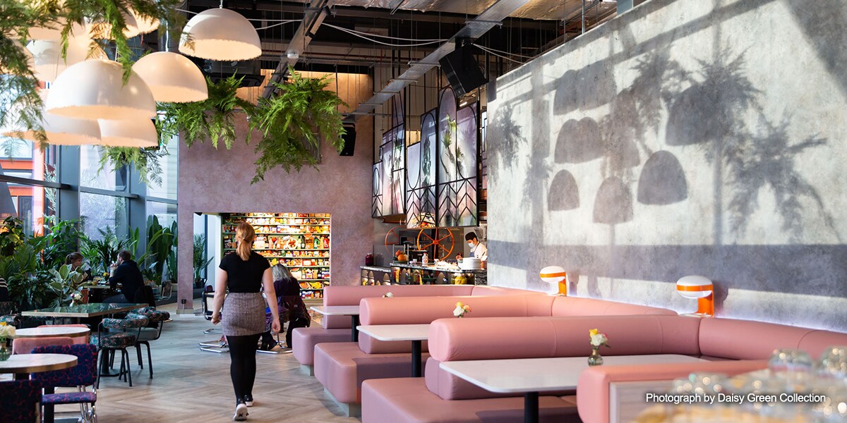 Bondi | Green je novou vlajkovou lodí mezi restauranty Daisy | Green kolekce, který přenáší pohodové australské jídlo a pití do řady londýnských lokalit. V přízemí budovy Brunel Building - moderní velké kancelářské budovy nacházející se vedle stanice Paddington - poskytuje audio systém Yamaha výkonný, avšak decentní zvuk.