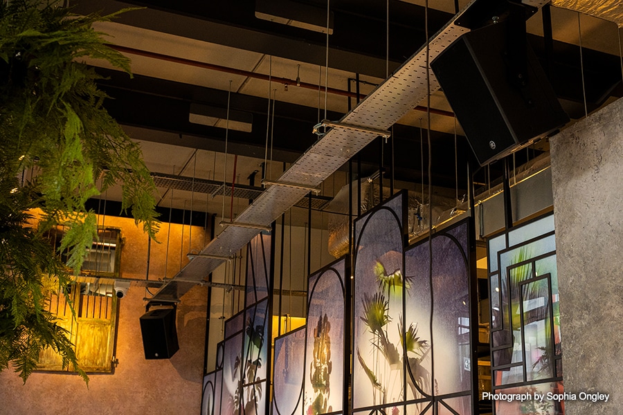 Restaurace se rozkládá na ploše přibližně 750㎡ a s reproduktory zavěšenými 3,5 metru nad podlahou Peter potřeboval reproduktory, které by poskytovaly výkonný, ale vysoce kvalitní a kontrolovatelný zvuk. „Mnoho věcí zde bylo v mnohem větším měřítku než běžná instalace v restauraci,“ říká. „V mnoha ohledech to bylo spíše jako instalace ve velkém nočním klubu.“