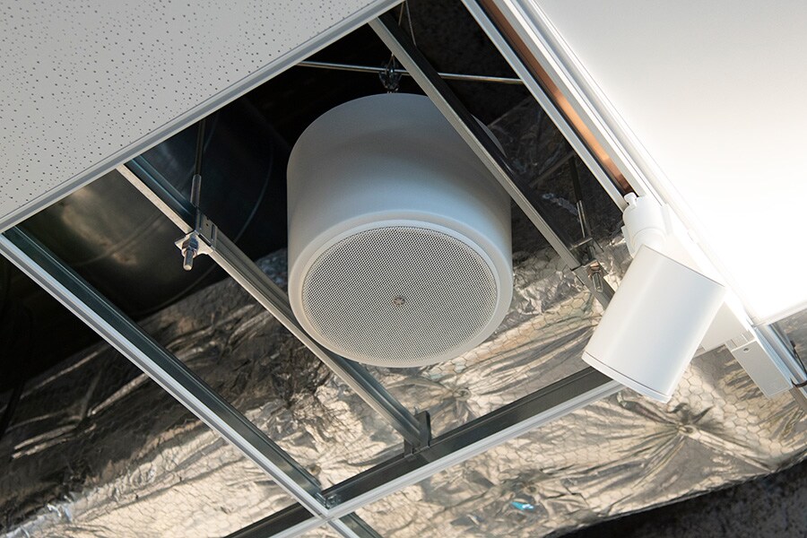 Open Innovation Space the ADECIA speakers and microphone are installed on the ceiling.