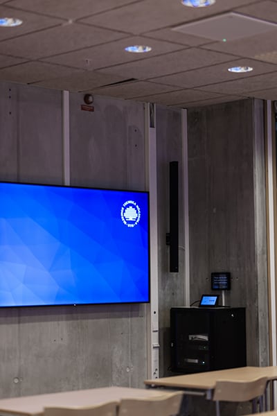 Knutsson: We wanted something that was easy to use! The teachers shouldn’t be nervous about using any of this equipment. So today it’s like this; you walk into a room, you start your zoom meeting, the ceiling microphone starts, the camera starts and everything just works. And that’s what we wanted; we wanted something that was easy, adaptable, flexible and that could over bridge the distance between the physical room and the student that was online somewhere in the world. So how could we connect those things together? And it was easier to get that connection when the teacher didn’t have to have a headset or handheld microphone – you could just go into the room and speak like it was a normal class.