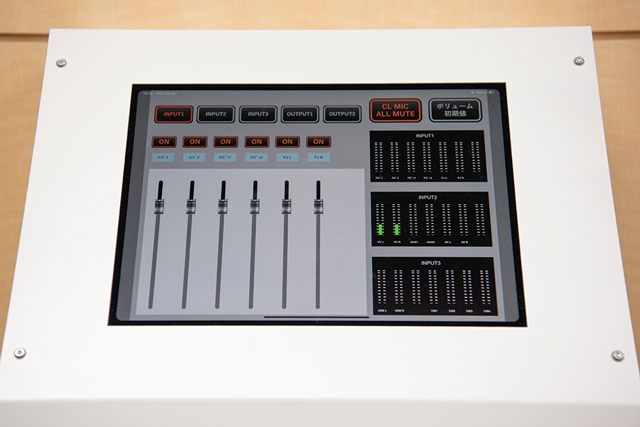 Ms. Kitano: We created the interface using with Yamaha's custom control-panel software, ProVisionaire. The design of the screen was created using ProVisionaireTouch. It is easy to see that it is turned on, and the meters increase the visibility of the input.