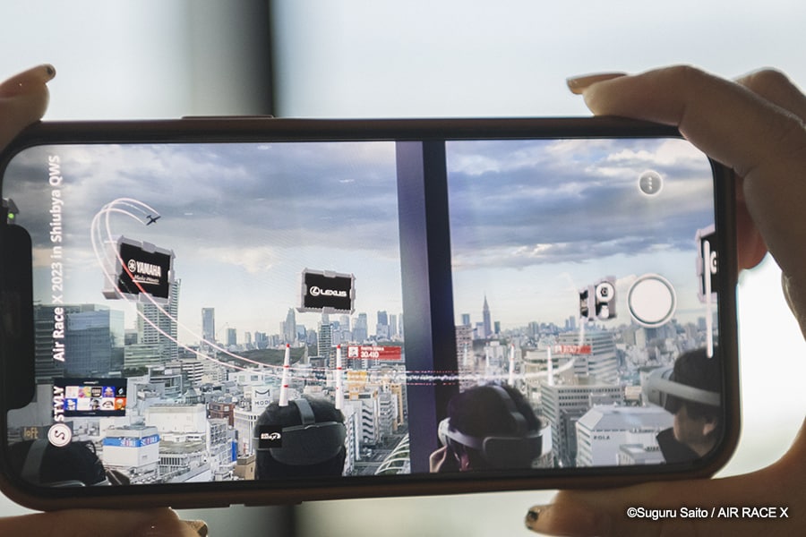 Při sledování tohoto "pětirozměrného motoristického sportu, který překračuje čas a prostor", se diváci shromáždili v městské hale Shibuya QWS, což je síťový a kreativní prostor v 15. patře mrakodrapu Shibuya Scramble Square. Odtud mohli sledovat virtuální letadla (využívající skutečná letová data) letící po virtuální trati.