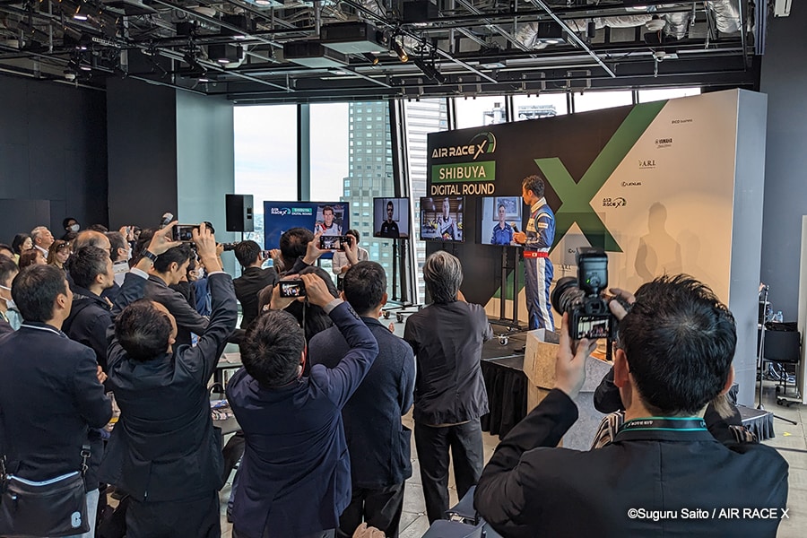 Závodění sportovních jednoplošníků rychlostí až 370 km/h ve městě je samozřejmě nepraktické, a tak byl závod Air Race X vyvinut jako "Formule 1 na obloze", aby vytvořil atmosféru a podívanou virtuálních závodů letadel v ulicích. Osm předních světových pilotů leteckých závodů létalo na identické trati na vzdálených místech po celém světě, přičemž přesné údaje o letu shromažďovalo a analyzovalo ústředí soutěže. Tato data pak byla použita k vytvoření série virtuálních "závodů" přes Shibuyi, přičemž diváci sledovali animace letadel prostřednictvím brýlí rozšířené reality (AR) a chytrých telefonů.