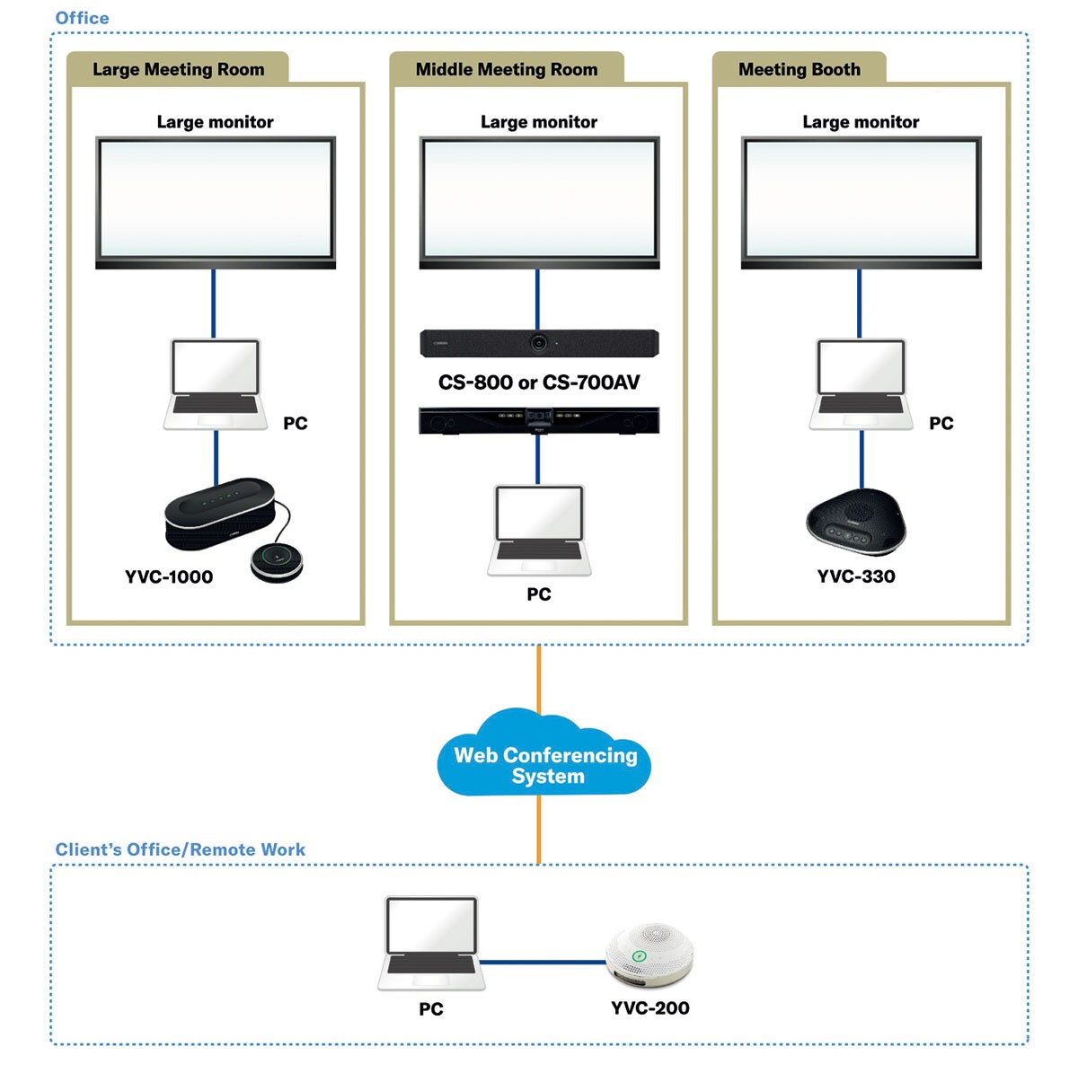 Od pandemie Covid-19 je hybridní práce zaměstnanců v sídle společnosti Kagome Co, Ltd. stále běžnější a společnost zvyšuje počet zasedacích místností, které podporují videokonference. V současné době využívá pro hybridní pracovní prostředí 38 systémů CS-700 pro video a zvukovou spolupráci, 10 kusů YVC-1000, 61 kusů YVC-300, 13 kusů YVC-330 a 18 reproduktorů YVC-200. Je důležité, aby systémy poskytovaly konzistentní a spolehlivý přenos, když je lidé používají pro schůzky v různých situacích.