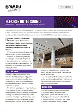 Courtyard řetězce Marriott je hotel nacházející se v historickém malajském městě Melaka, který nabízí své služby pro turisty, lokální i obchodní hosty. Všestranné systémy ozvučení pro hotelovou hudbu na pozadí a pro taneční sál jsou založeny na matrix procesorech Yamaha MTX série.