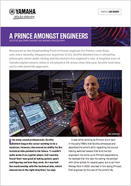 Scottie Baldwin, známý jako dlouholetý zvukař Prince, Lady Gaga a v poslední době také singapurské superstar JJ Lin, má osvěžující filozofii ohledně mixování zvuku a role moderního zvukaře pro živé akce. Scottie, který je dlouholetým uživatelem digitálních mixážních pultů Yamaha, si při letošním koncertu JJ Lin v britské aréně udělal čas, aby nám pověděl o svém přístupu.