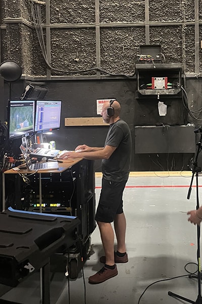 Engineer Scott Steiner behind the scenes on-set of “The Runarounds”