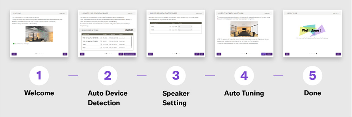 Okamžitě optimalizujte nastavení zvuku pro prostředí vaší místnosti pomocí automatické detekce a automatické konfigurace komponent. Systém lze také vzdáleně sledovat prostřednictvím webového uživatelského rozhraní.