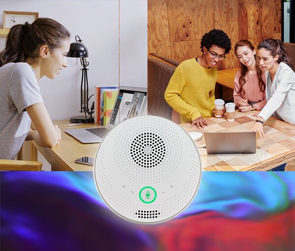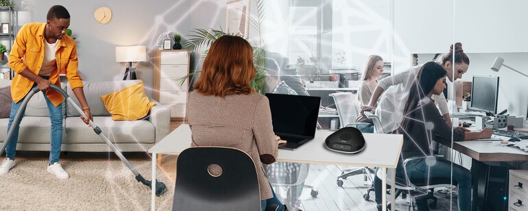 Díky filtrování hluku na pozadí a vytváření virtuální zasedací místnosti kolem vás poskytuje čistý zvuk nezávisle na tom, kde se právě nacházíte.