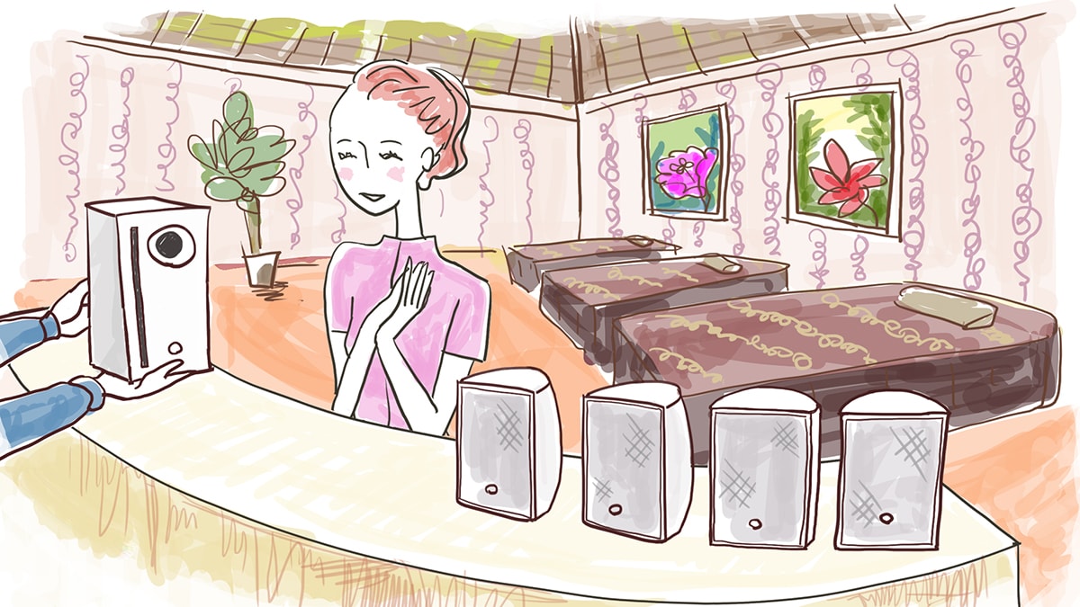 Yamaha offers a full product line of speakers optimized for commercial spaces. With high quality sound and smart, unobtrusive designs, Yamaha speakers will elevate the ambience of a space signicantly. In particular, we recommend the VXC or VXS series speakers for delivering background music in stores and other commercial spaces, while the VXL series is perfect for amplifying speeches in locations such as conference rooms or banquet halls.
