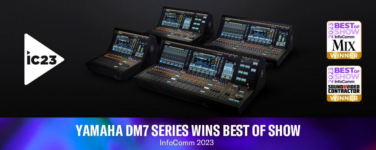 Yamaha s hrdostí a potěšením oznamuje, že na letošním InfoComm 2023 získala za novou řadu profesionálních mixů DM7 dvě ocenění Best of Show Awards.