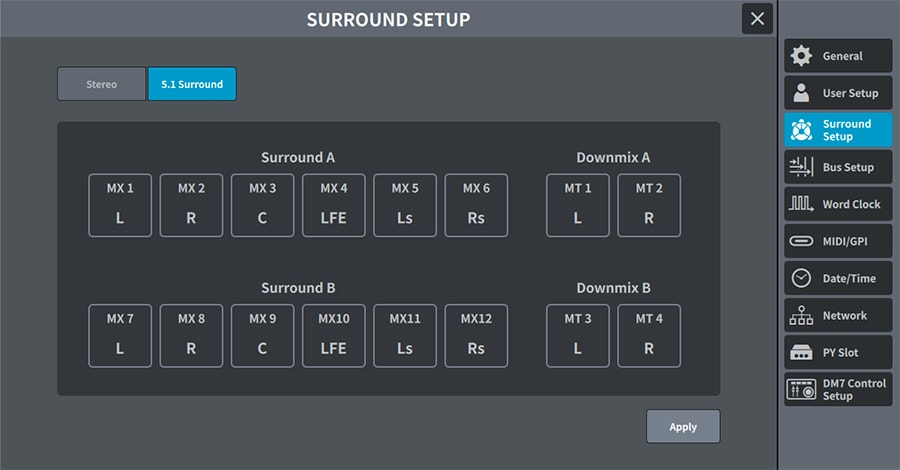 Nejnovější firmware DM7 verze 1.60 přináší dálkové ovládání AFC Image, objektového imerzního systému Yamaha, a vytváří tak efektivní pracovní postupy pro pohlcující zvukové zážitky v živém prostředí. Přidává také prostorové panorámování a monitorování 5.1 do rozšiřujícího balíčku Broadcast DM7.
