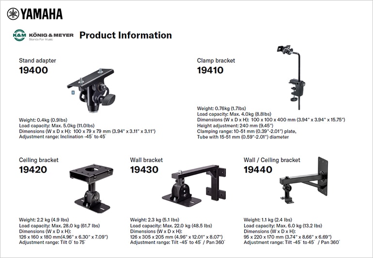 Founded in 1949, König & Meyer is a leading global manufacturer of stands for microphones, speakers and musical instruments, providing a range of high quality, durable bracket and stand hardware which is fully compatible with Yamaha equipment.