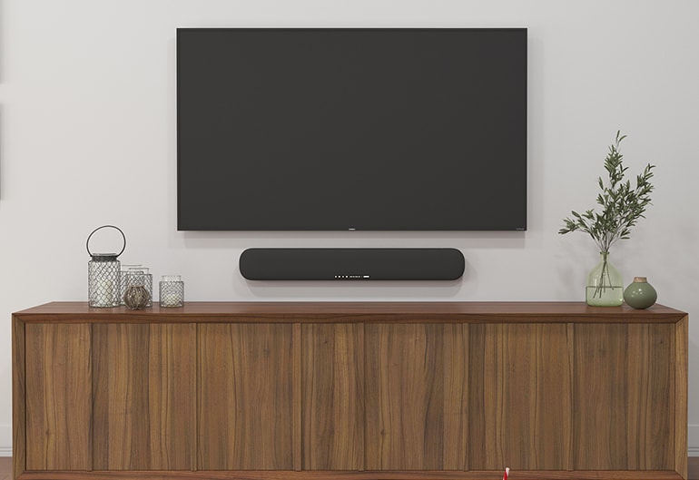 No need to make room for anything but one small sound bar. A built-in subwoofer enables this device to stay compact while still delivering powerful bass.