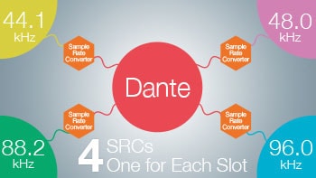 Word clock synchronization becomes an issue when interfacing between different audio formats. Each Mini-YGDAI slot includes a sample rate converter (SRC) so that devices operating on different word clocks can be connected without causing noise or signal interruptions.