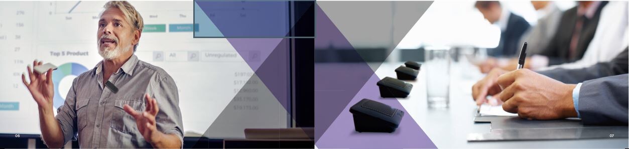 Tyto mikrofonní systémy jsou navrženy tak, aby poskytovaly výjimečnou kvalitu zvuku v nejnáročnějších prostředích – špičkových zasedacích místnostech, velkých posluchárnách a jinde – nabízejí maximální flexibilitu konfigurace a svobodu. Jako nejnovější přírůstek do naší rodiny řešení zasedacích a konferenčních místností jsou bezdrátové mikrofonní systémy Executive Elite navrženy tak, aby zvádly vaše potřeby v oblasti konferenčního zvuku.