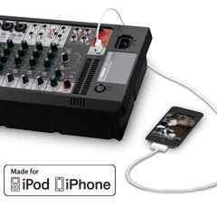 400 wattový, přenosný PA systém s 8 kanálovým aktivním mixem. Dva 8" reproduktory, možnost připojení iPod/iPhone přes USB, SPX digitální reverby, zabudovaná funkce potlačení zpětné vazby a všestranný EQ.