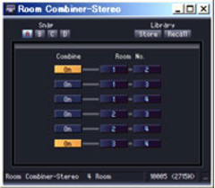 The Room Combiner component adds multiple audio signals to "virtually" combine the acoustic spaces of multiple rooms. Mono and stereo components that combine 4, 8, 12, or 16 rooms are available. This component provides an effective solution for situations in which several rooms or areas can be physically partitioned or combined to handle different types of events or numbers of participants. Sources and outputs can easily be switched as required, and the processing for multiple areas can be handled by a single DME unit.