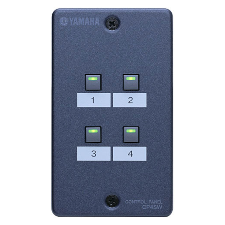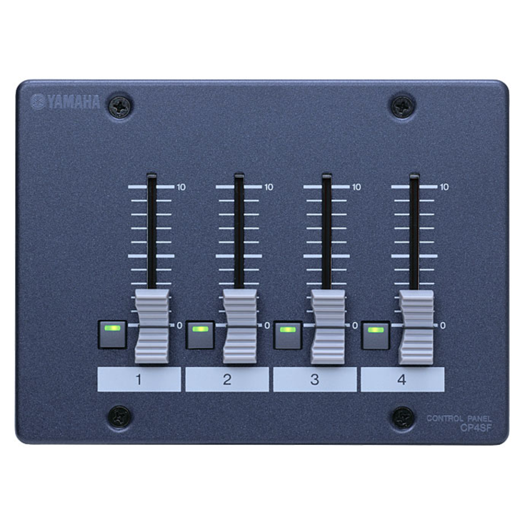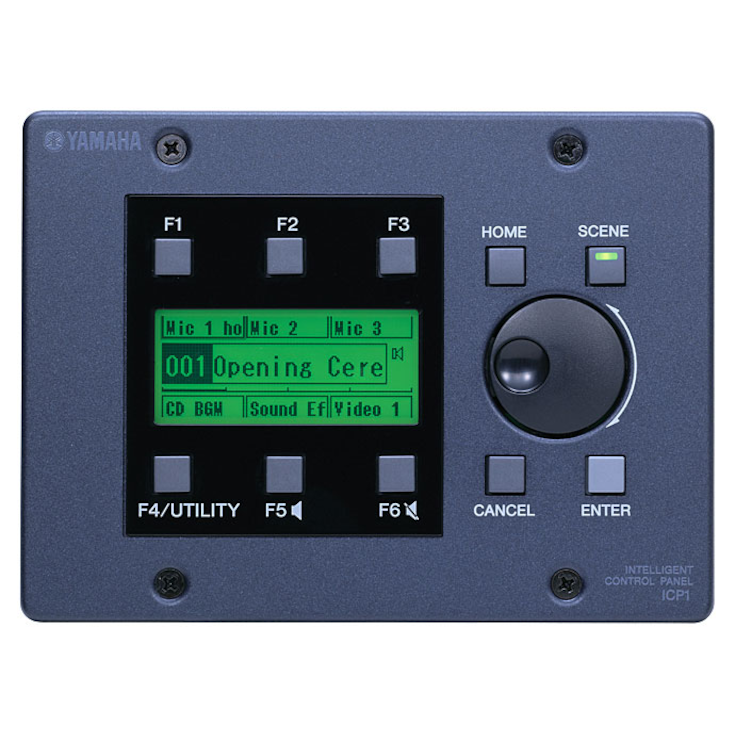The DME Satellite series can be controlled from any standard GPI controller, but Yamaha offers a range of Ethernet and GPI based control panels and fader/switch panels for fuss-free system setup. The ICP1 is an intelligent control panel with an LCD interface that can display information in five different languages (English, German, French, Spanish, and Japanese). The ICP1 installs in a standard wall-mount conduit box, controls assigned DME parameters via a single Cat-5 Ethernet cable, and can be easily set up to meet the requirements of any type of end user. There are also the GPI-based CP1SF control panel with 1 switch and 1 fader, the CP4SF with four switches and four faders, and the CP4SW with four switches. These controllers can be used for convenient remote scene switching, microphone on/off switching, microphone or BGM level control, and more.