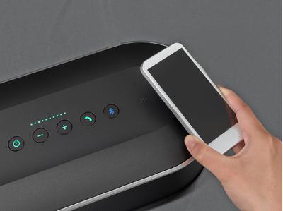 Connect simply and easily by placing an NFC-compatible smartphone or tablet over the NFC logo on the top of the control unit while the Bluetooth button is blinking*4.