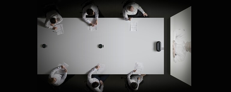 In its standard configuration*1 the YVC-1000MS is ideal for small and medium-size Skype for business meetings. For conferencing on a larger scale, external speakers*2 and up to four additional microphones can be added to cover a wider area and accommodate more conference participants.