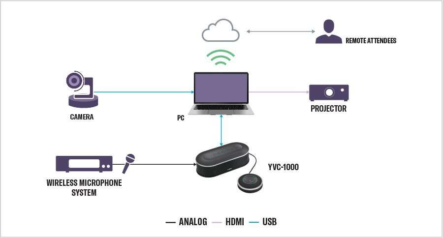 Even a smaller classroom needs the right tools, so that the teacher can be heard and understood clearly. Solutions such as the YVC-1000 provide you with a simple and flexible way to connect to students. Whether the students are in the room, or joining as part of a hybrid class. The YVC-1000 ensures that everyone is heard.