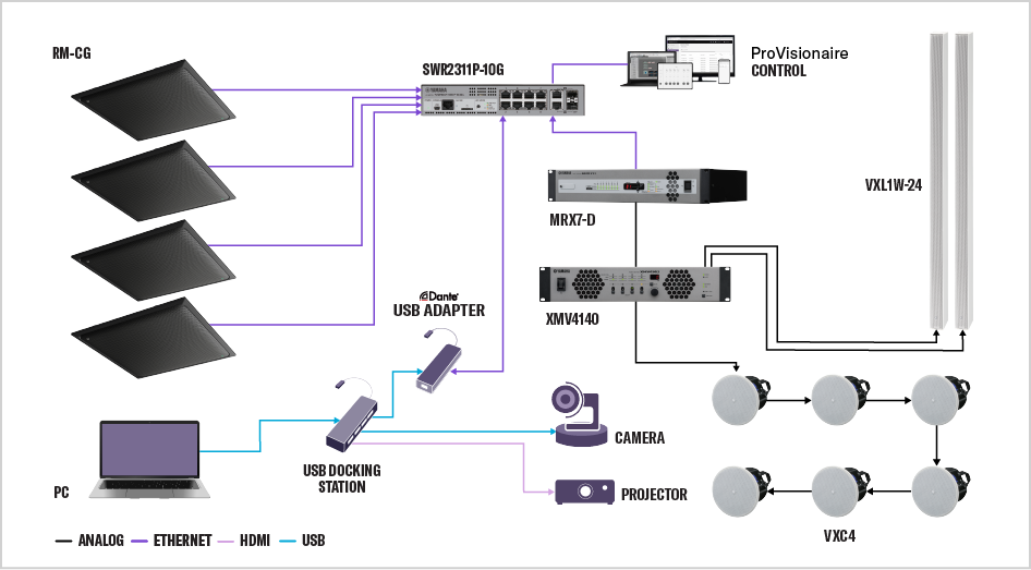 Larger spaces and hybrid classes are simple to cater for if you use Yamaha technology - with solutions that easily scale to meet your needs in bigger venues.