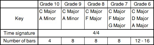 • Candidates are expected to repeat the patterns as many times as needed to play continuously with the backing track.