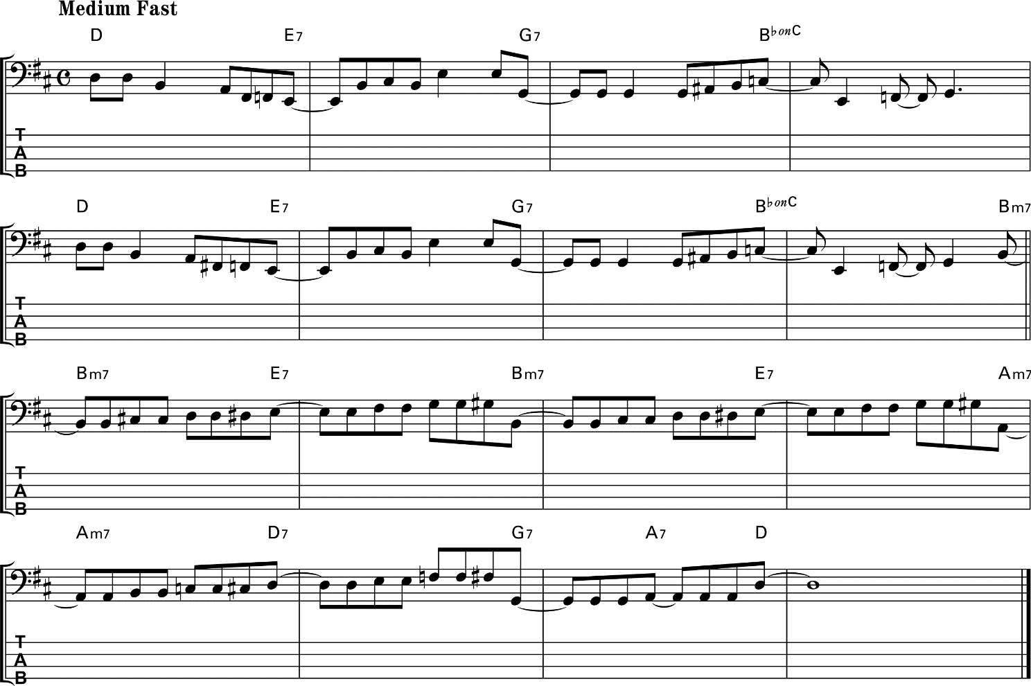 4. Candidate plays the bass pattern with the rhythm track after the examiner’s cue.