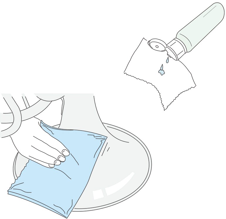 Naneste malé množství na lešticí gázu nebo lešticí hadřík.