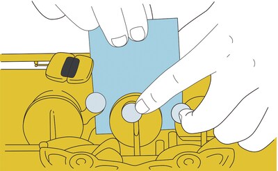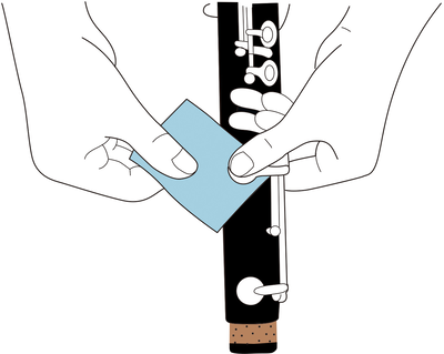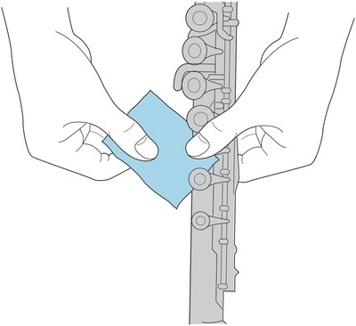 Place the powder paper between the pad and tone hole with the non-printed side facing the pad then gently close the key a few times.