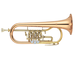 Intermediate Series German style rotary valve, Bb Flugelhorn, Gold-brass, Bell: 151.8mm (6"), Bore size MS: 11.00mm (0.433"), 3rd valve slide trigger, Finish: Clear lacquer, Mouthpiece: 15F4