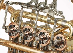 Full double horns usually have a main tube and F tuning slide. The addition of a Bb tuning slide in this model provides even finer pitch adjustment capability.