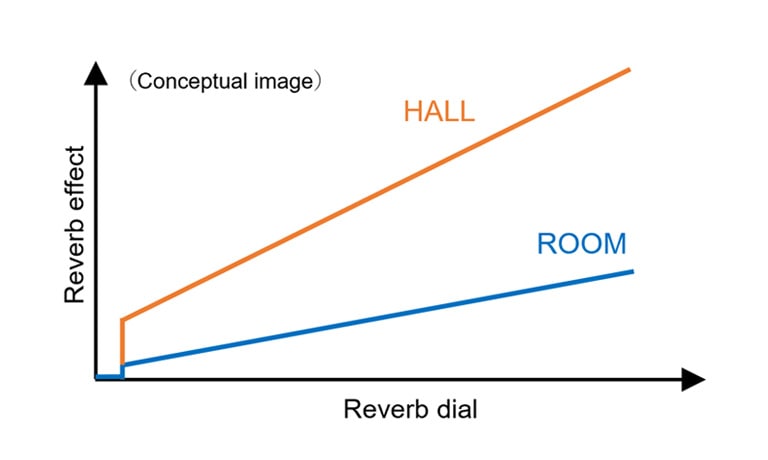 Greater control over reverb lets users recreate the feeling of playing in environments ranging from small practice rooms that have relatively little reverberation to large halls with rich, dense reverberation.