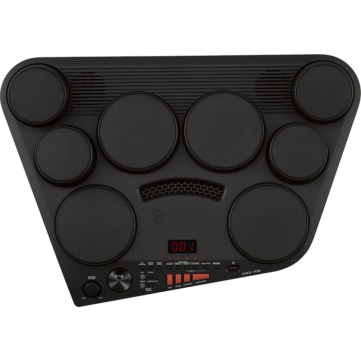 DD-75 jsou digitální bicí s osmi dynamickými pady a dvěma pedály. Vysoce kvalitní bicí zvuky a široká škála perkusních zvuků z celého světa jsou míchány s orechestrálními zvuky, což vám poskytuje širokou škálu hudebních možností. Do portu AUX IN můžete připojit například MP3 přehrávač a hrát si společně s hudebním podkladem v MP3.