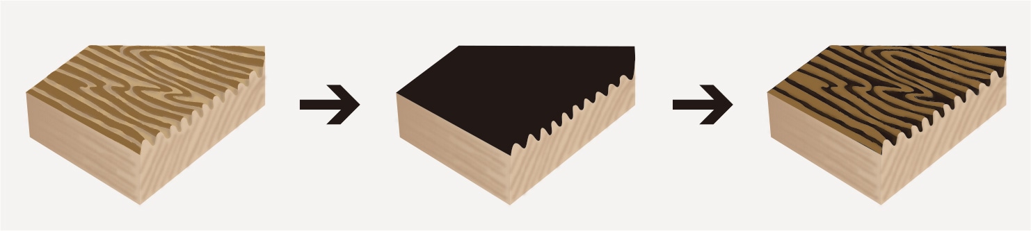 Tradiční japonská technika povrchové úpravy dřeva známá jako "UZUKURI" byla upravena pro potřeby bicích korpusů. Během tohoto postupu jsou měkké oblasti kresby dřeva leštěny a poté je celý korpus potažen tenkou vrstvou černé barvy. Poté je celý povrch korpusu znovu vyleštěn ještě před aplikováním finálního nátěru, pro zdůraznění přirozené krásy kresby dubového dřeva.
