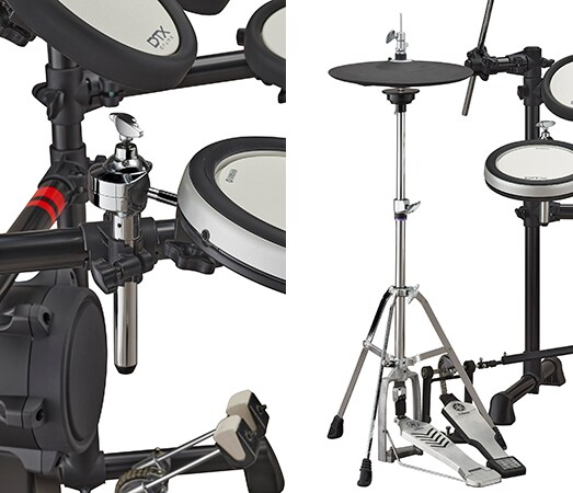 Hi-hat stojan Yamaha HS650A je součástí modelů DTX6K2-X a DTX6K3-X. Všechny modely série DTX6 používají také tradiční kulový úchyt Yamaha pro snare pady, díky čemuž je jemné nastavení velice snadné.